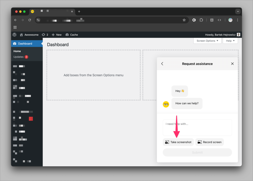 - The new Awwwsome Support Widget lives directly in your WordPress dashboard